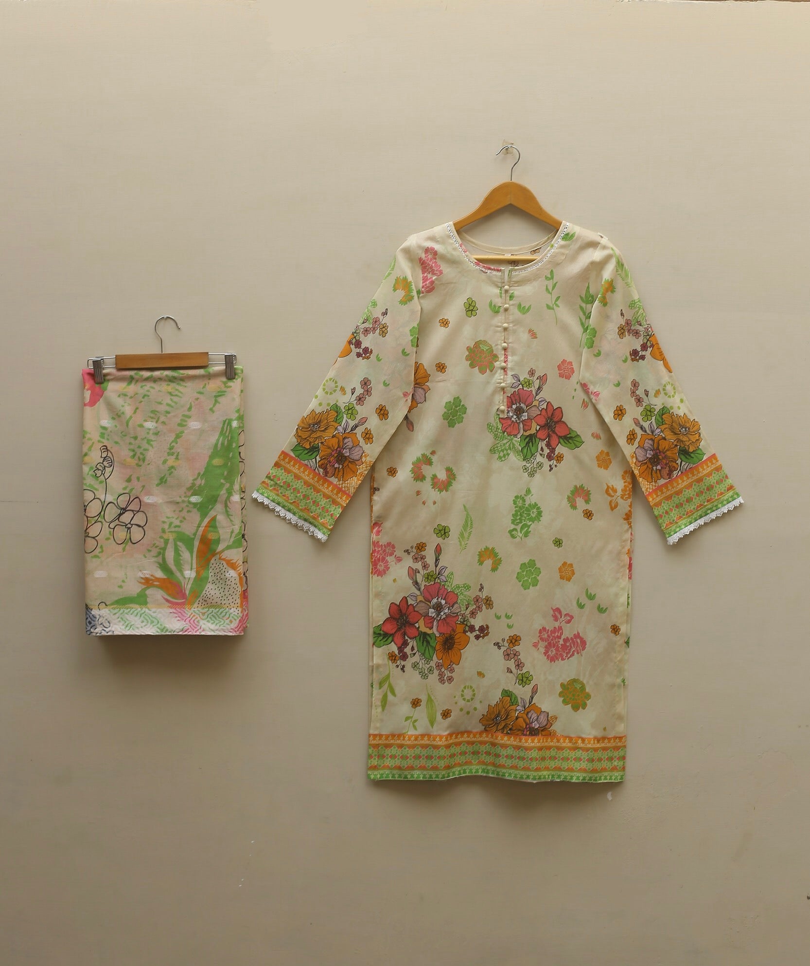 This elegant 3-piece printed lawn suit features a beautifully detailed design, perfect for warm weather. Crafted from soft, breathable lawn fabric, the outfit includes a matching shirt and trouser paired with a lightweight, printed lawn dupatta that adds a touch of grace and charm. Ideal for casual wear or daytime gatherings.