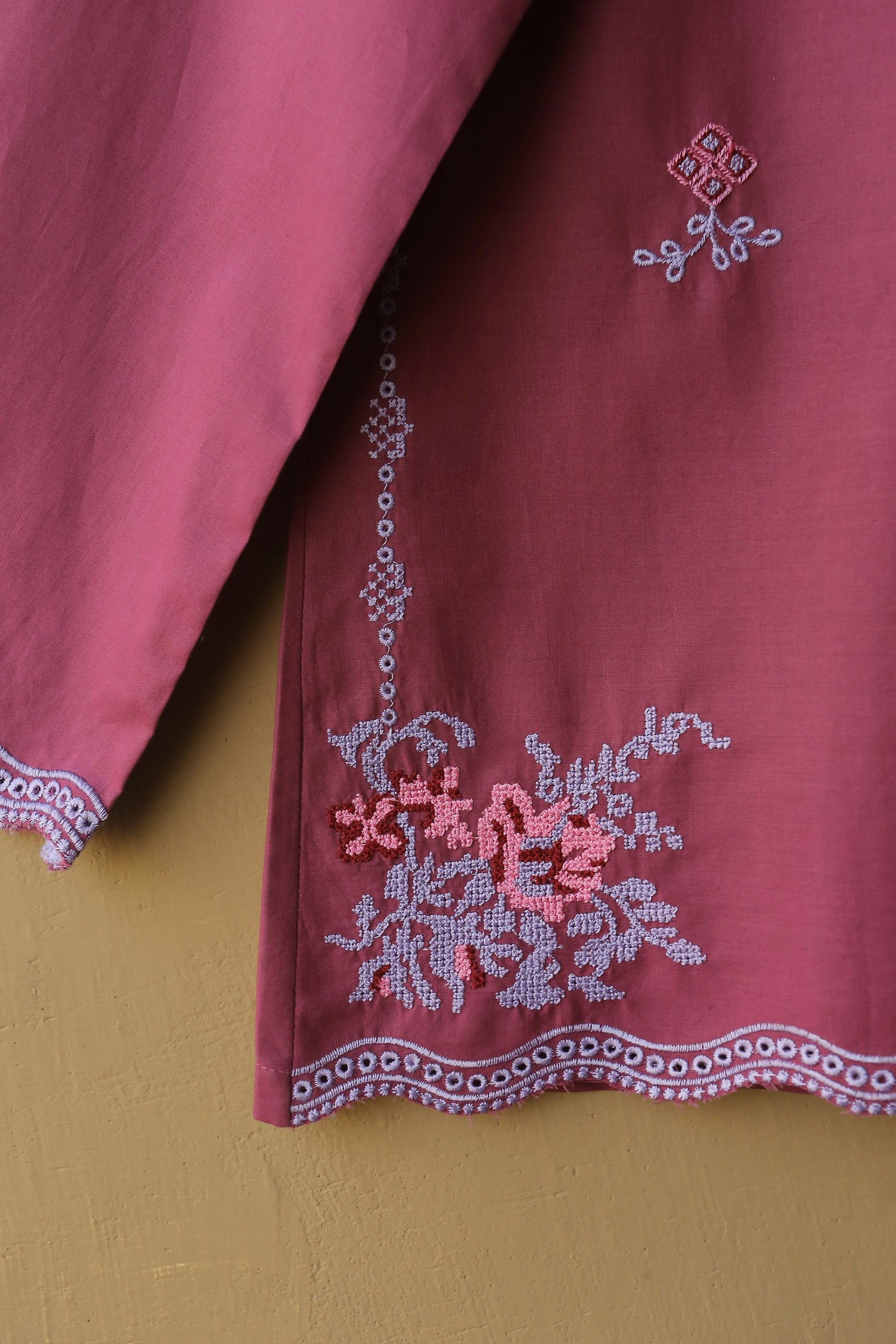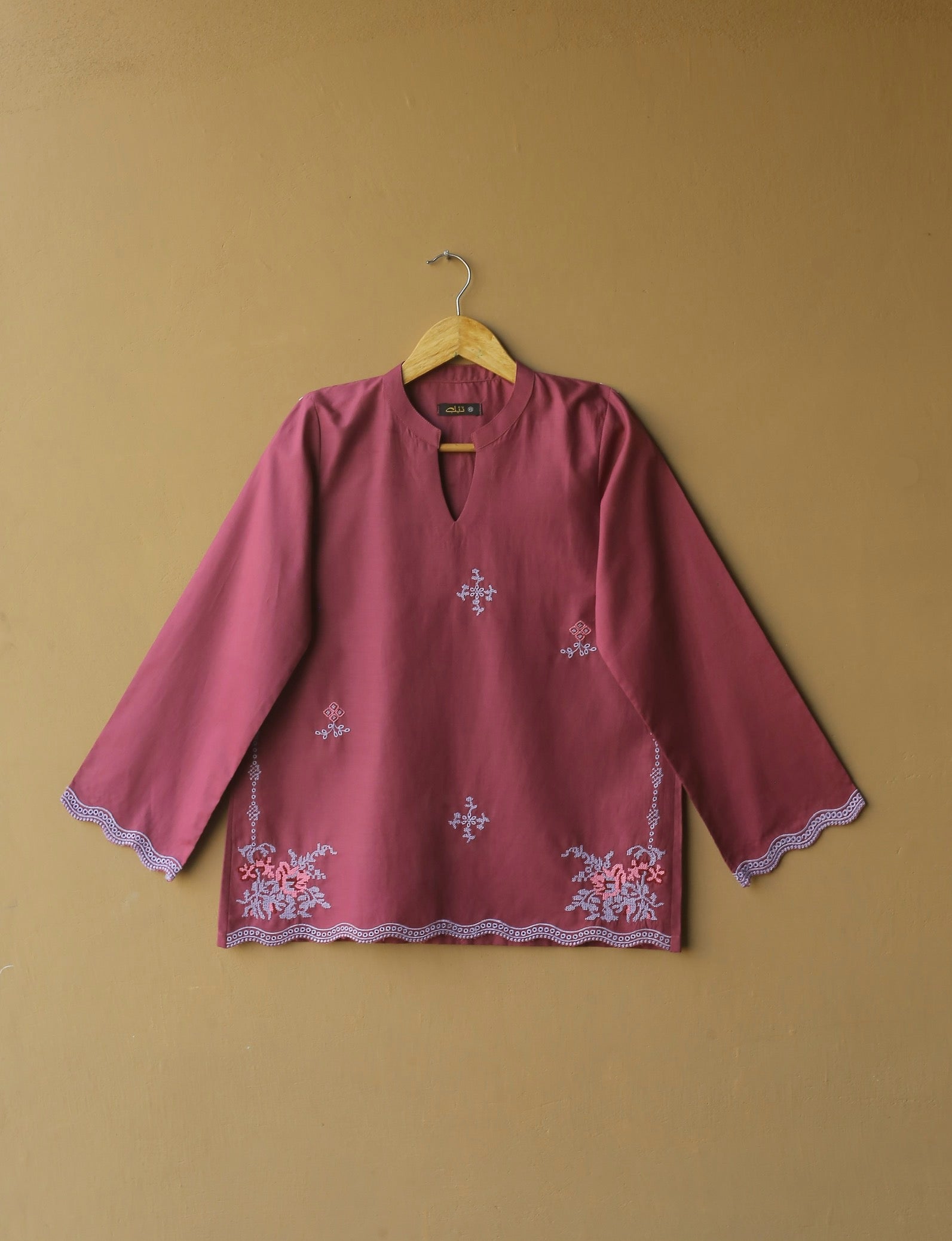 - Delicate embroidered borders on the sleeves for added charm