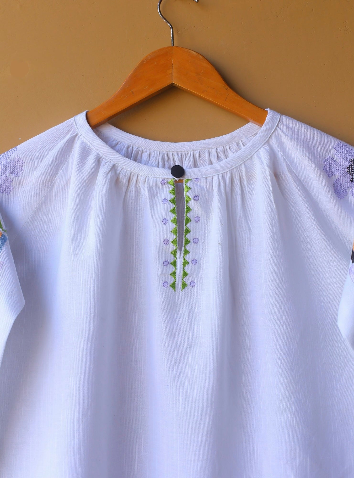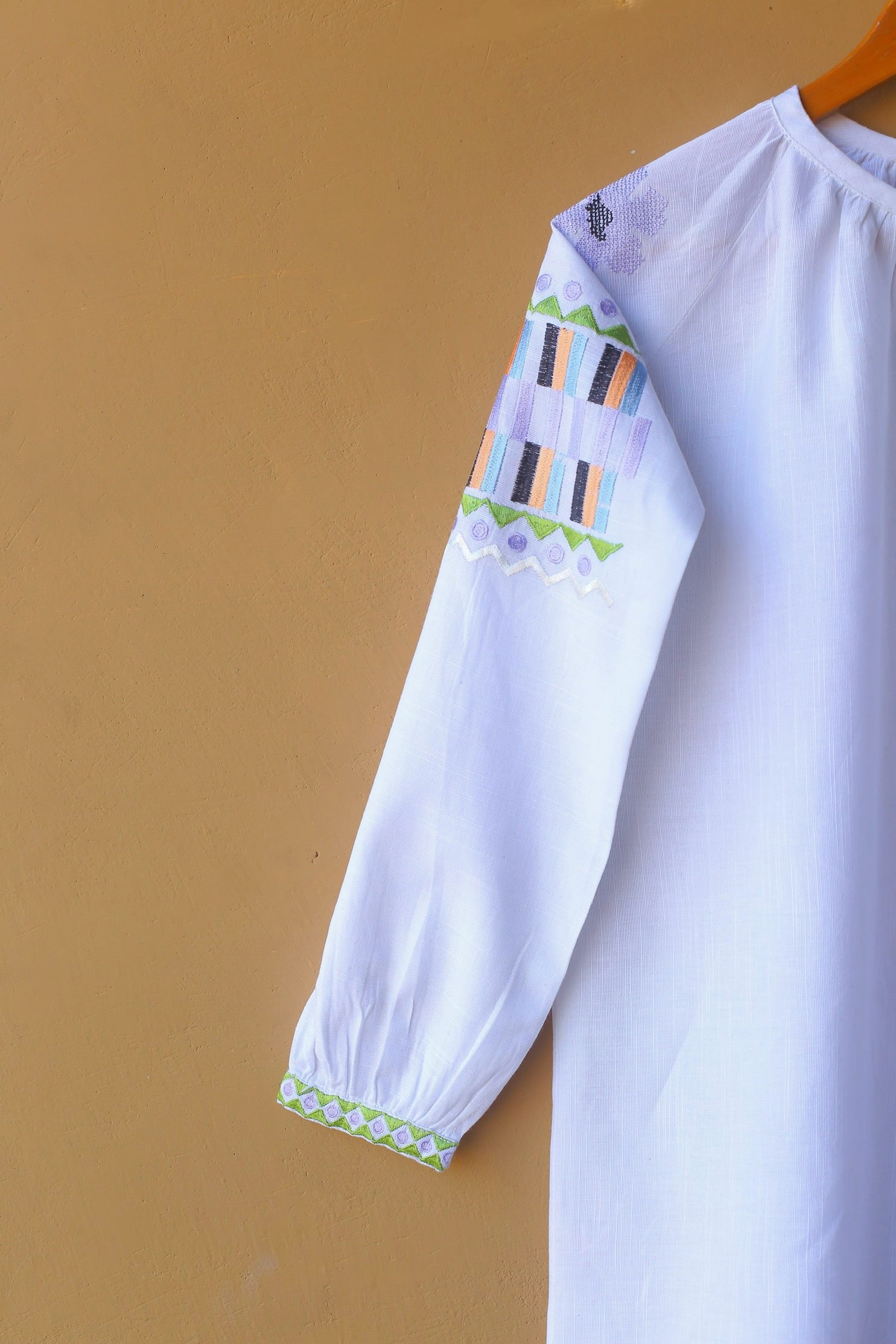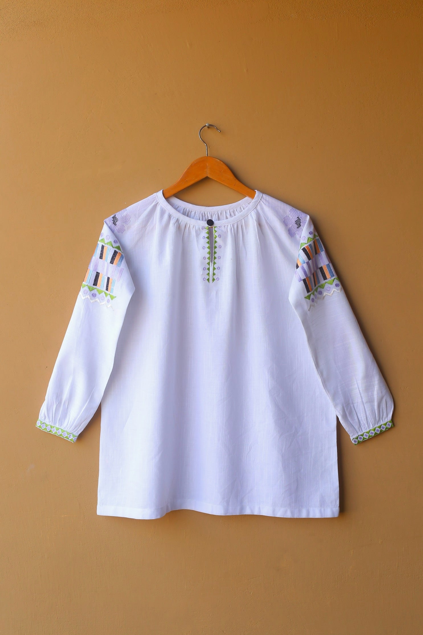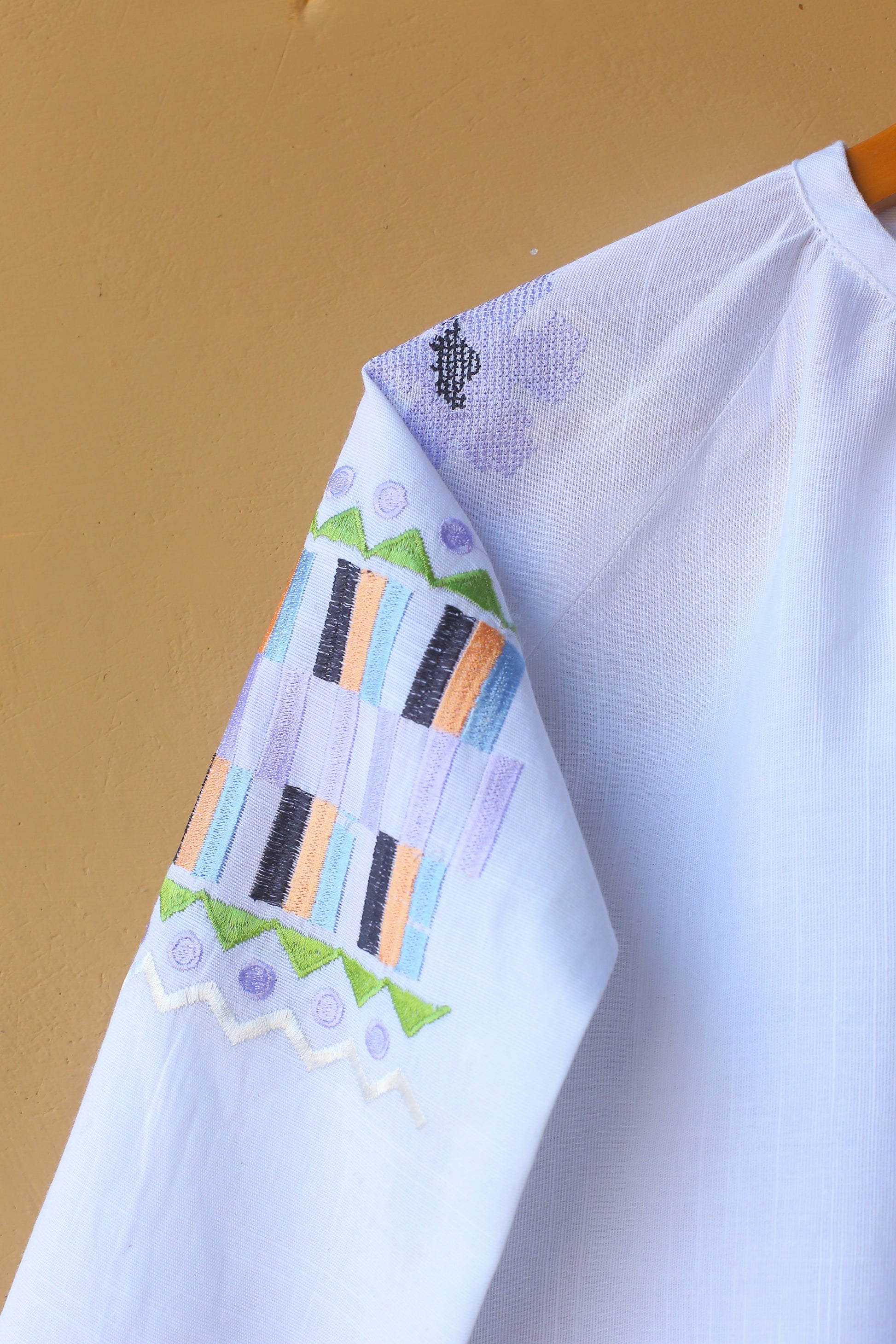 - Beautiful ethnic-inspired embroidery on sleeves and neckline