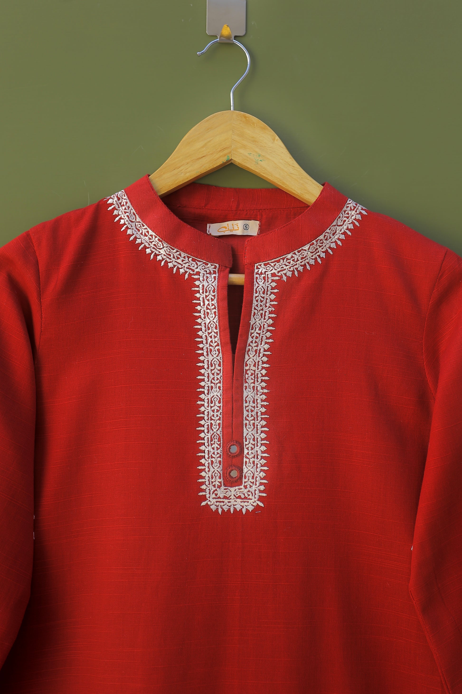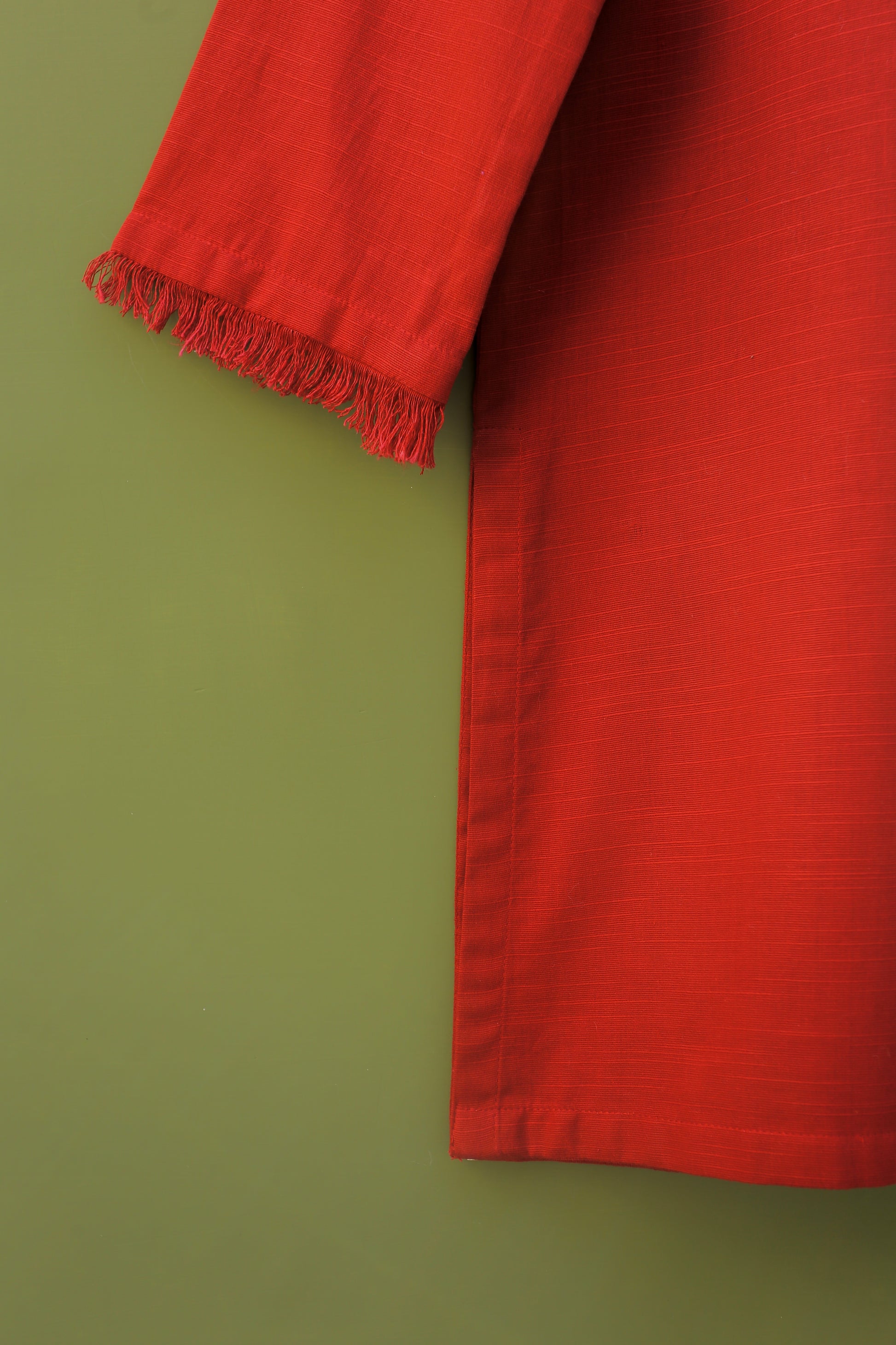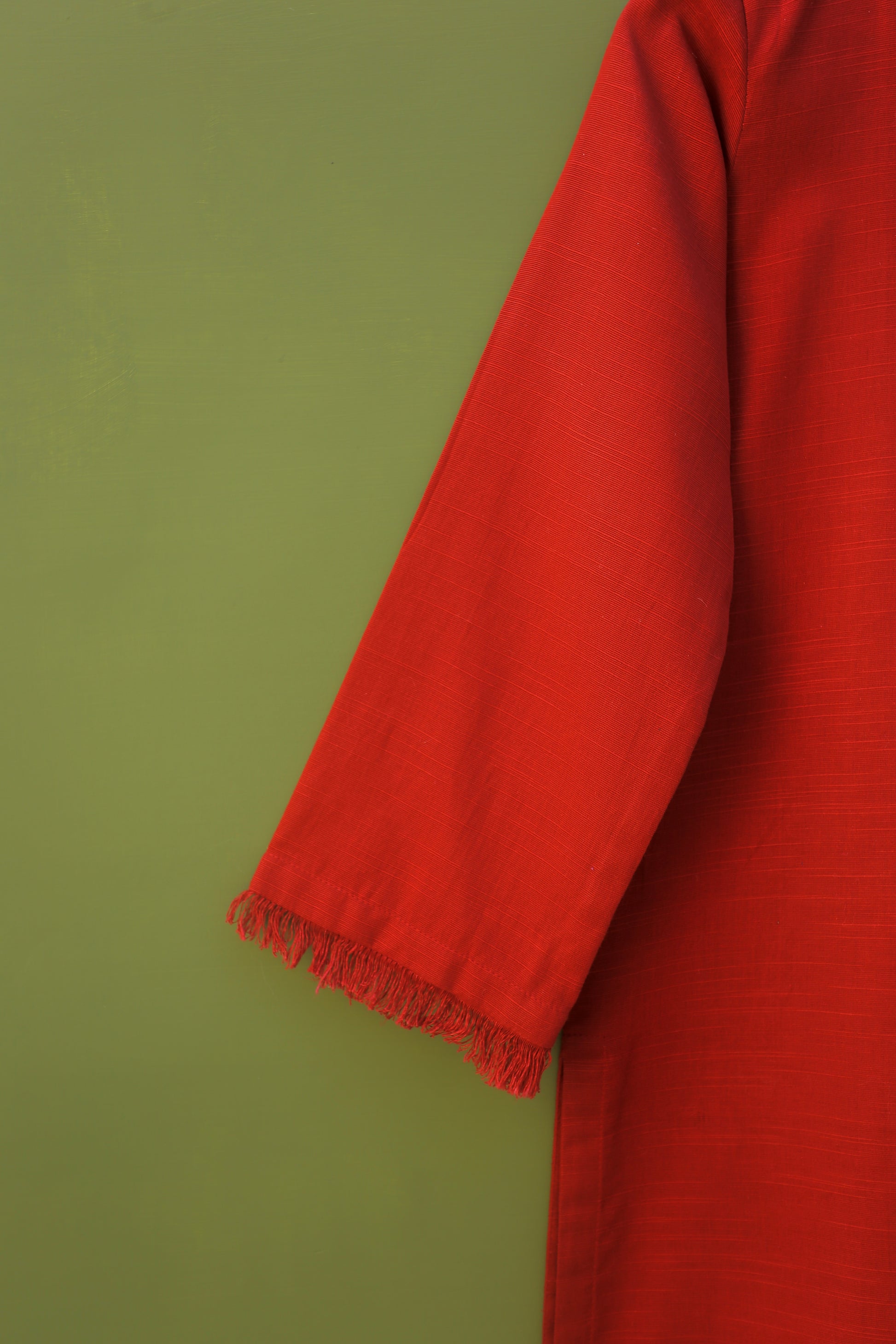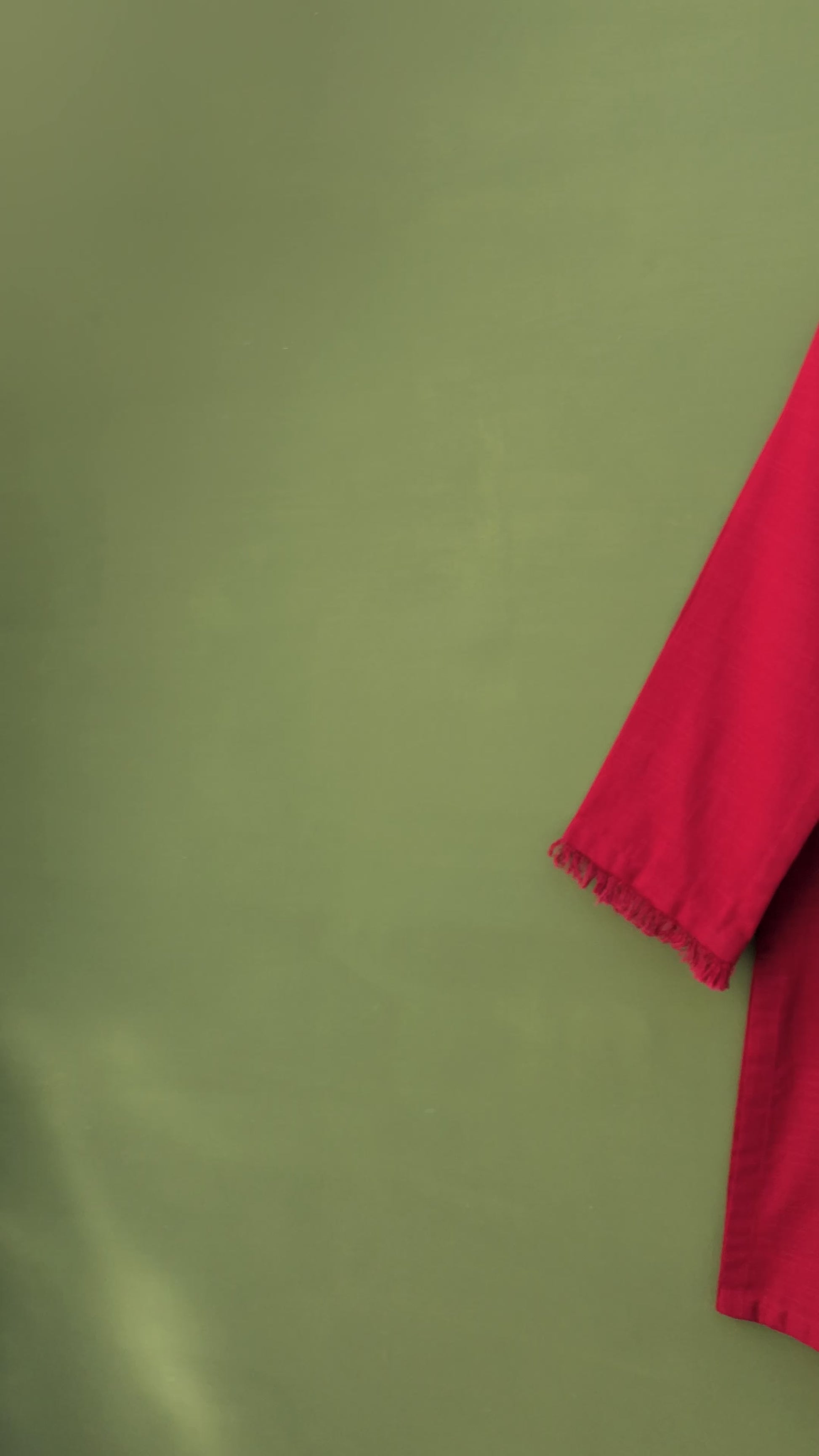 This red maroon, straight, loose-fit kurta is both elegant and comfortable. It features beautiful embroidery at the neckline and trendy fray edge details, adding a unique touch. Perfect for festive occasions or casual outings, this kurta pairs well with various bottoms for a stylish look.
