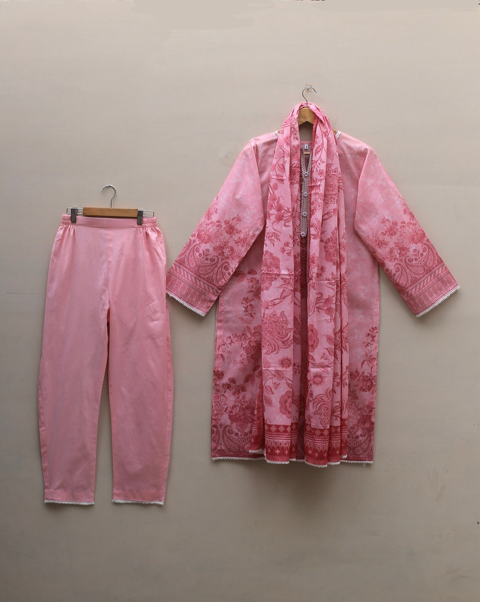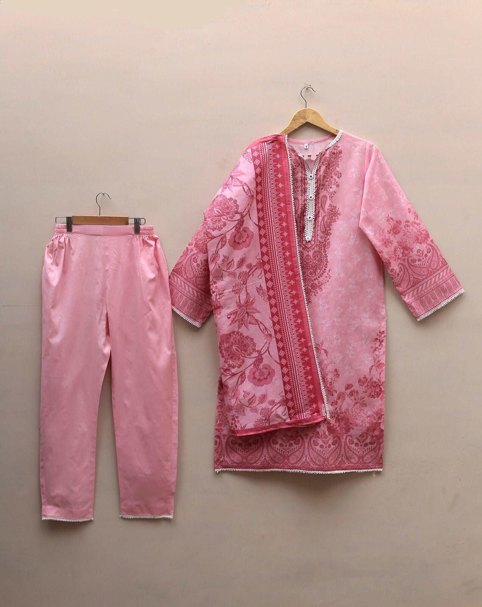 This elegant 3-piece printed lawn suit features a beautifully detailed design, perfect for warm weather. Crafted from soft, breathable lawn fabric, the outfit includes a matching shirt and trouser paired with a lightweight, printed lawn dupatta that adds a touch of grace and charm. Ideal for casual wear or daytime gatherings.