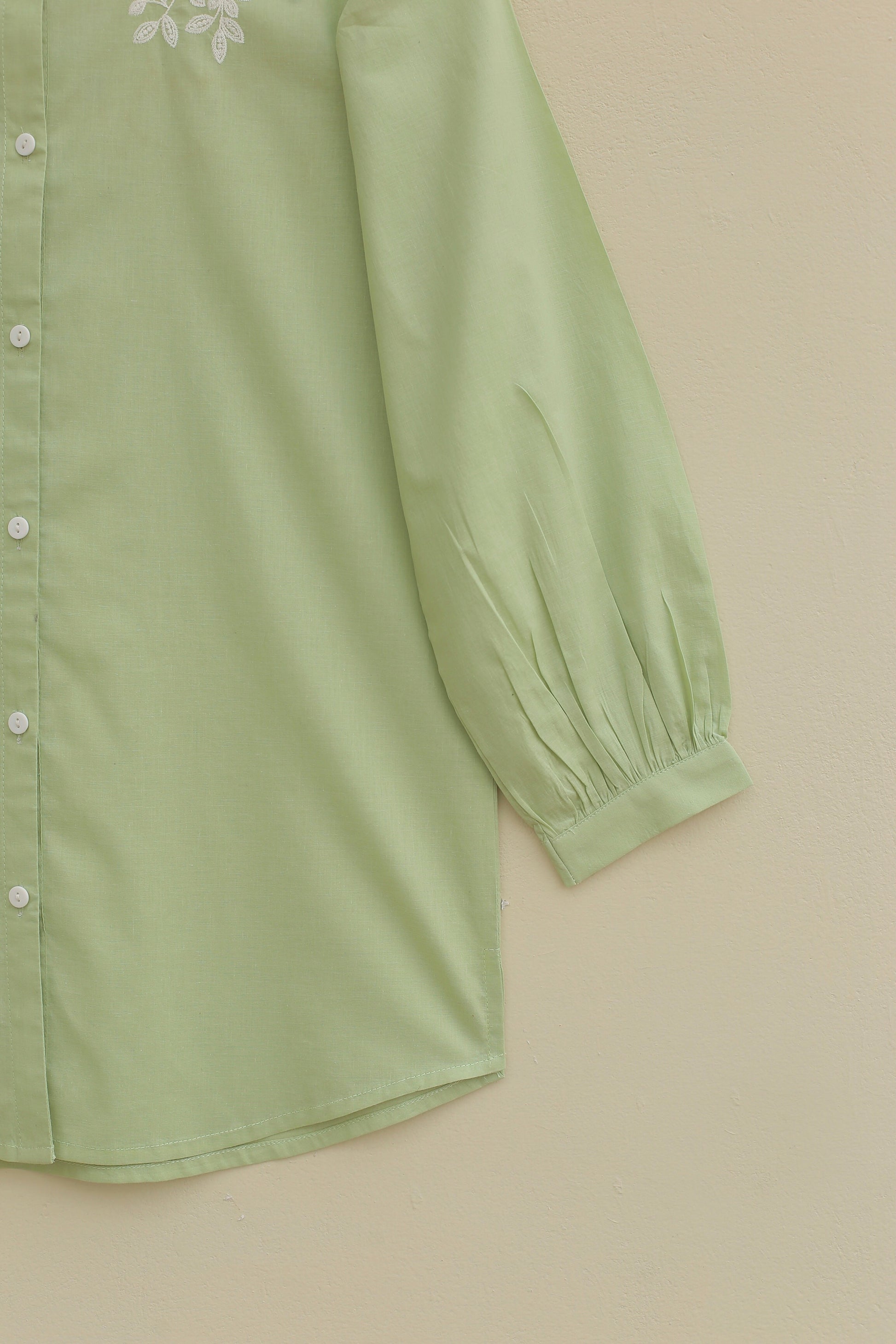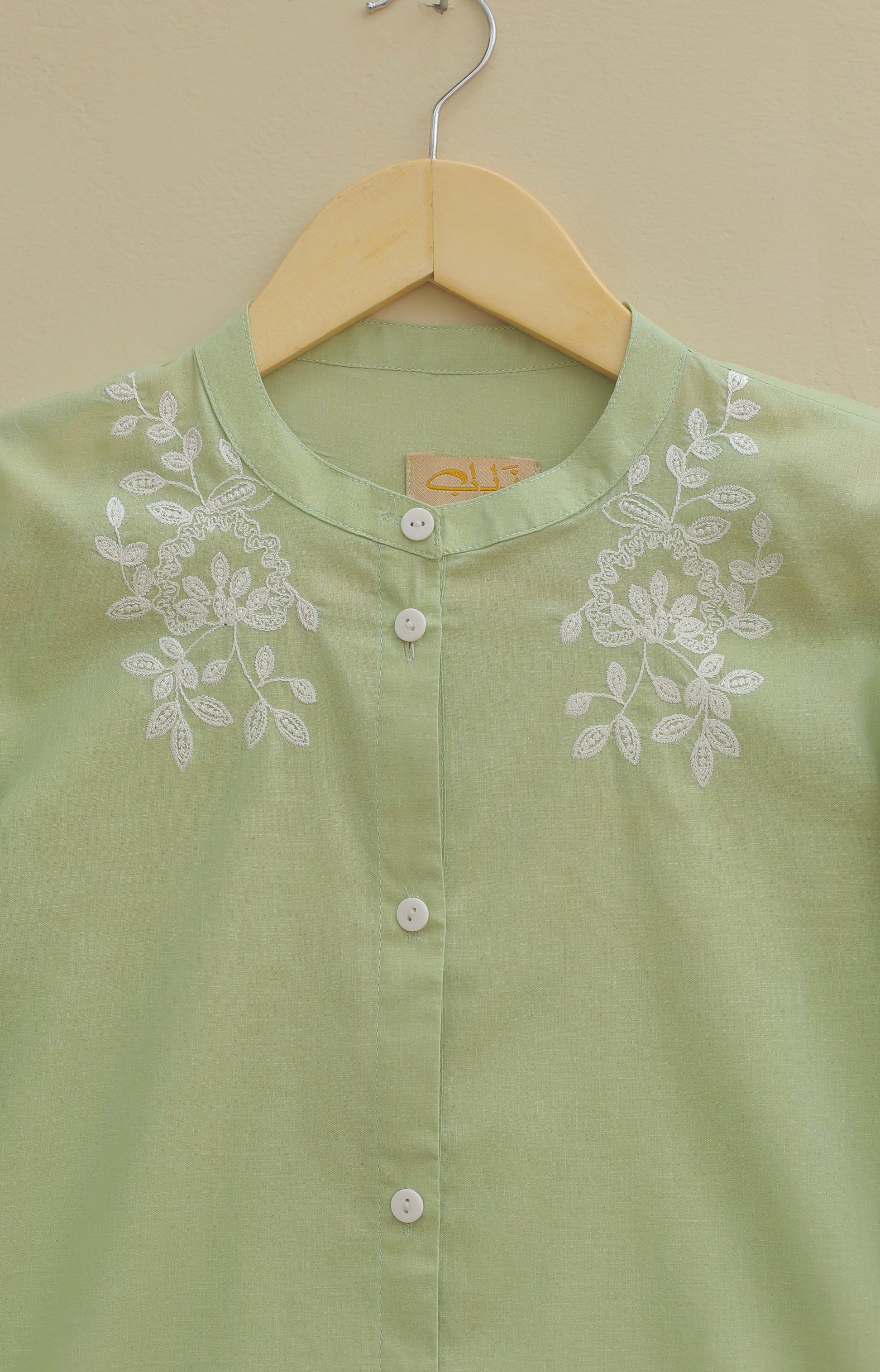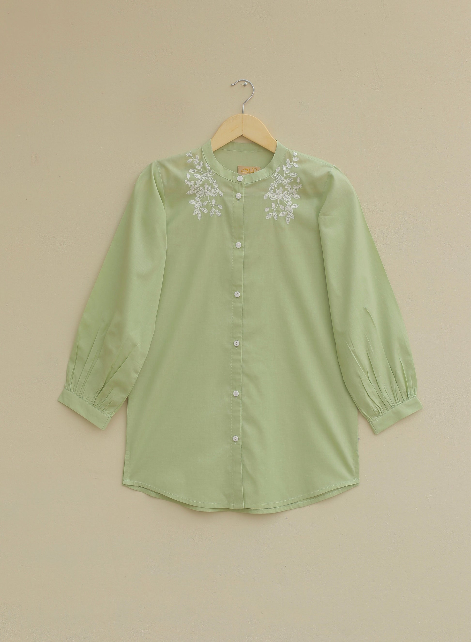 Hey, check out our stunning pista button down shirt for the summer! It’s beautifully adorned with intricate embroidery on the front, adding a touch of elegance to your summer wardrobe.