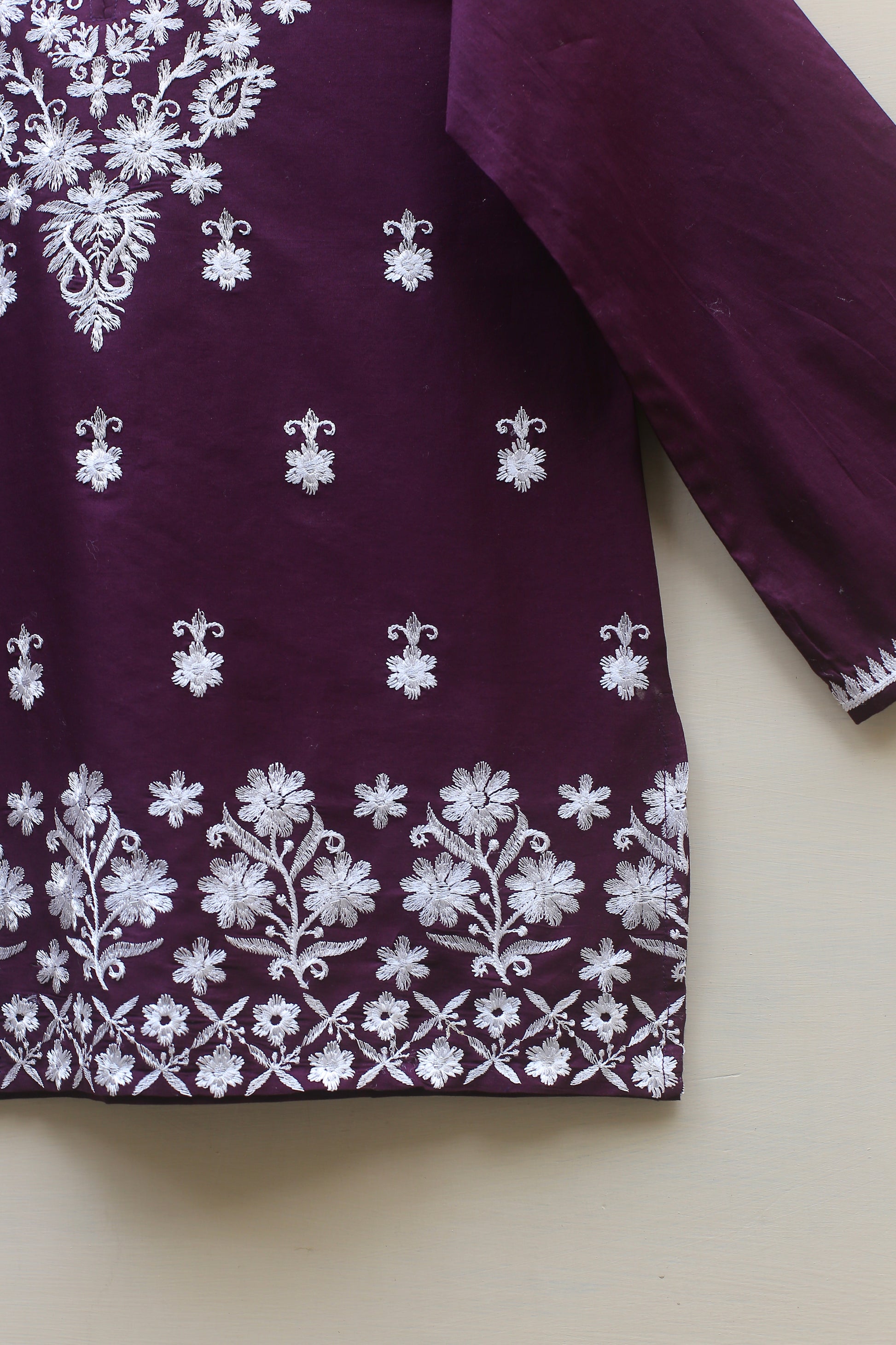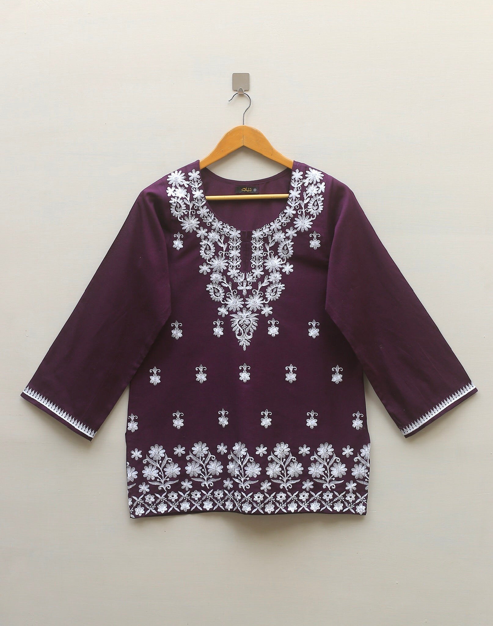 Elevate your summer wardrobe with this elegant plum Chickenkari top, crafted from breathable and lightweight lawn fabric — perfect for warm-weather wear. The design features a delicately embroidered neckline that adds a touch of refinement, while subtle motif spray embroidery is scattered across the front, lending it a timeless, graceful charm. Whether styled casually or dressed up with accessories, this versatile top is a chic staple for effortless summer elegance.