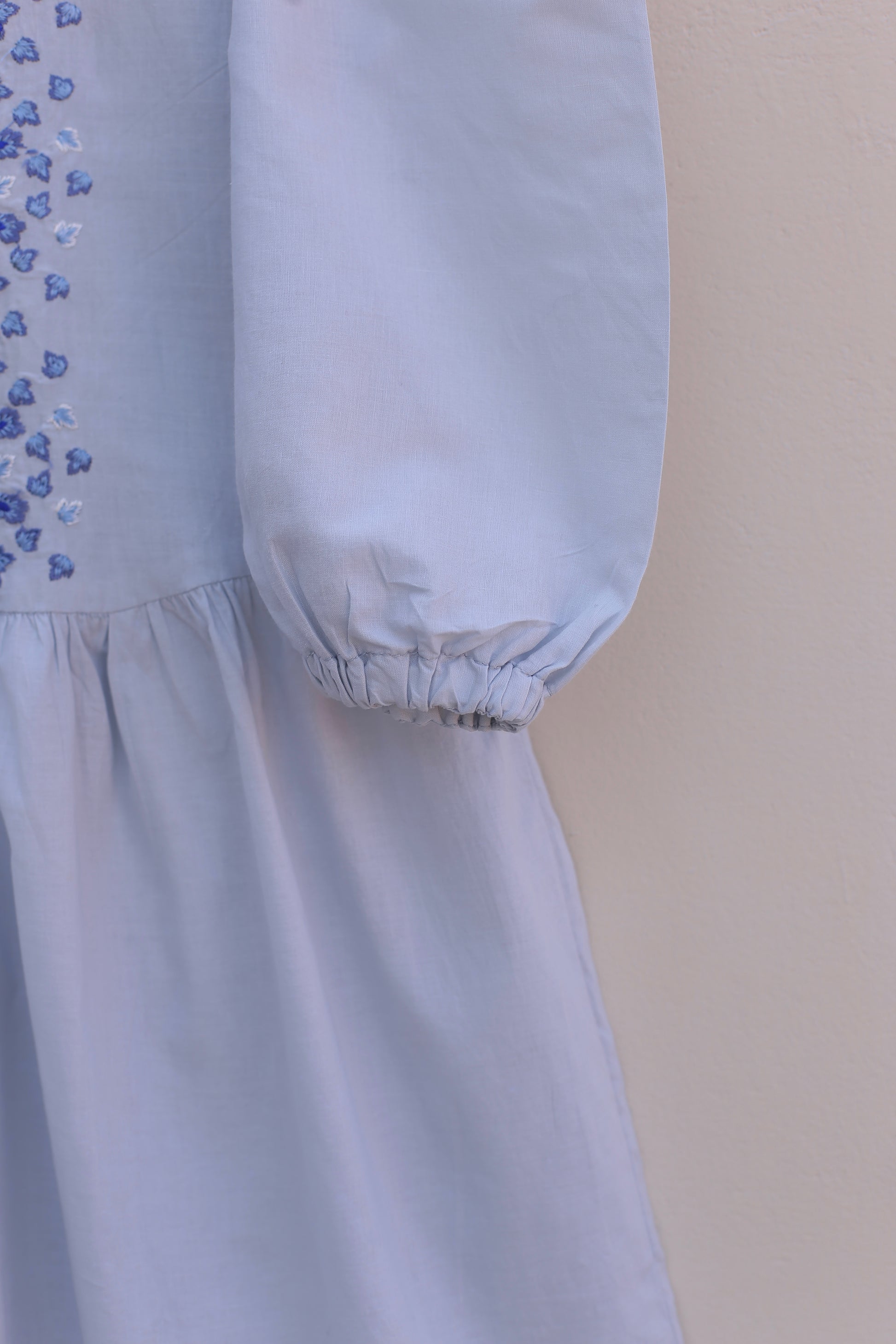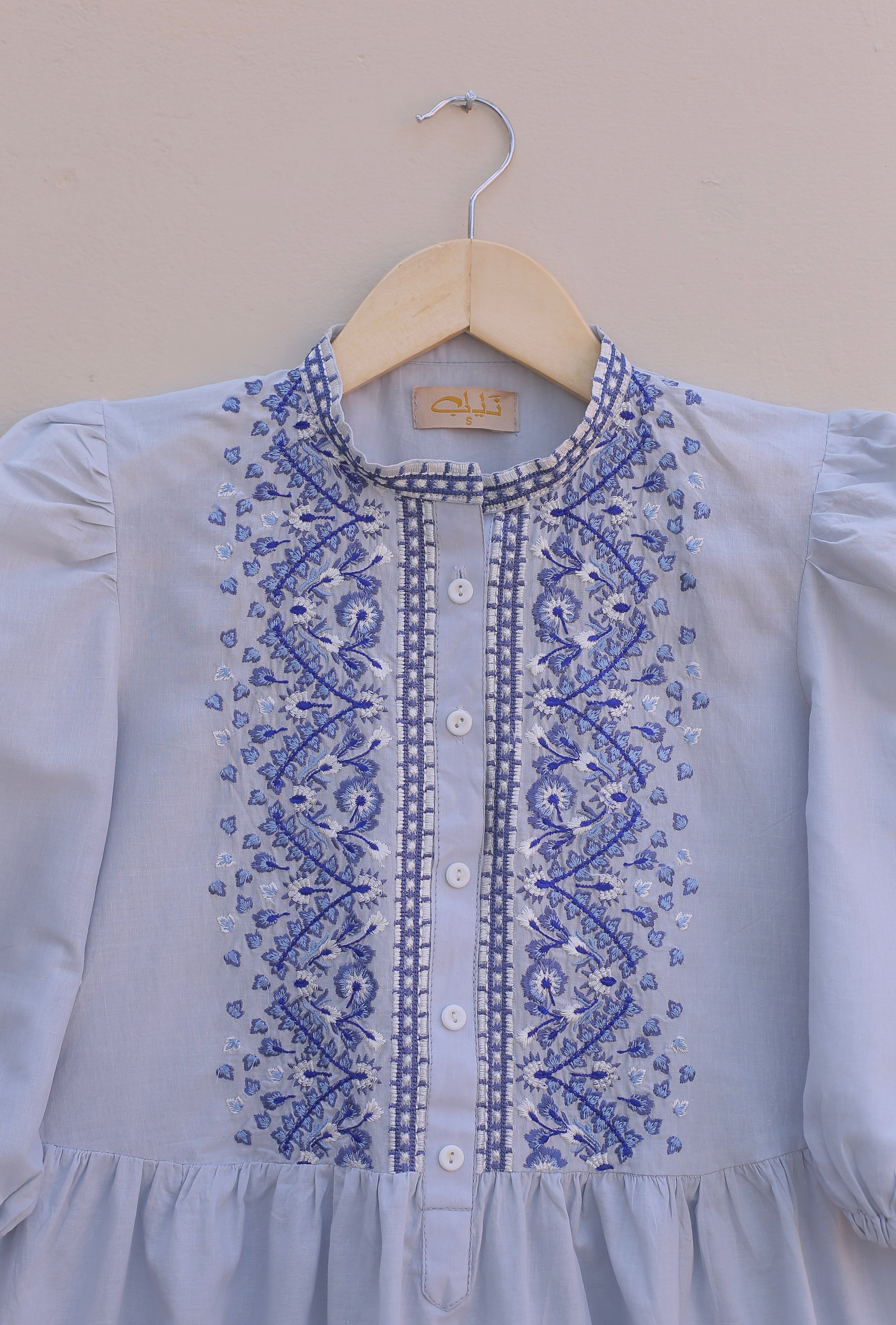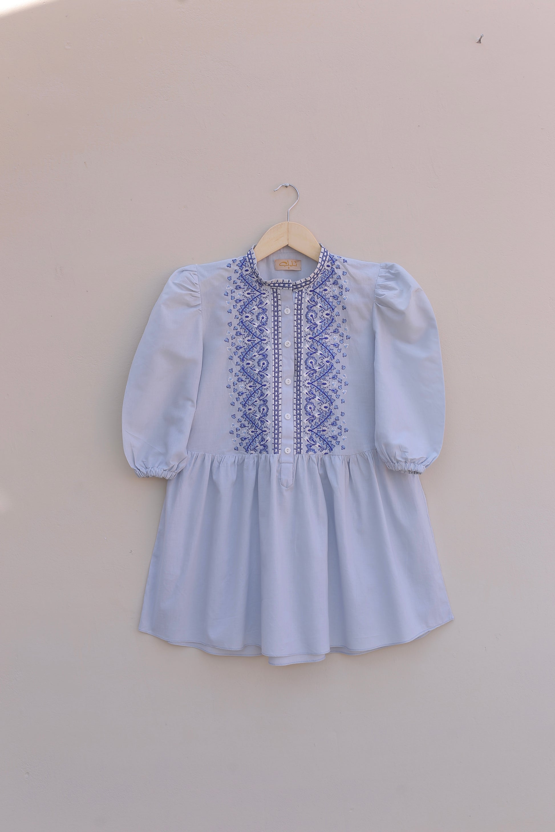 “Elevate your summer style with our gorgeous sky top! Featuring a stunning embroidered neckline and trendy puff half sleeves, this top is a must-have for your warm-weather wardrobe. This top will keep you looking chic and feeling comfortable all summer long. Don’t miss out on this stylish and versatile article!”