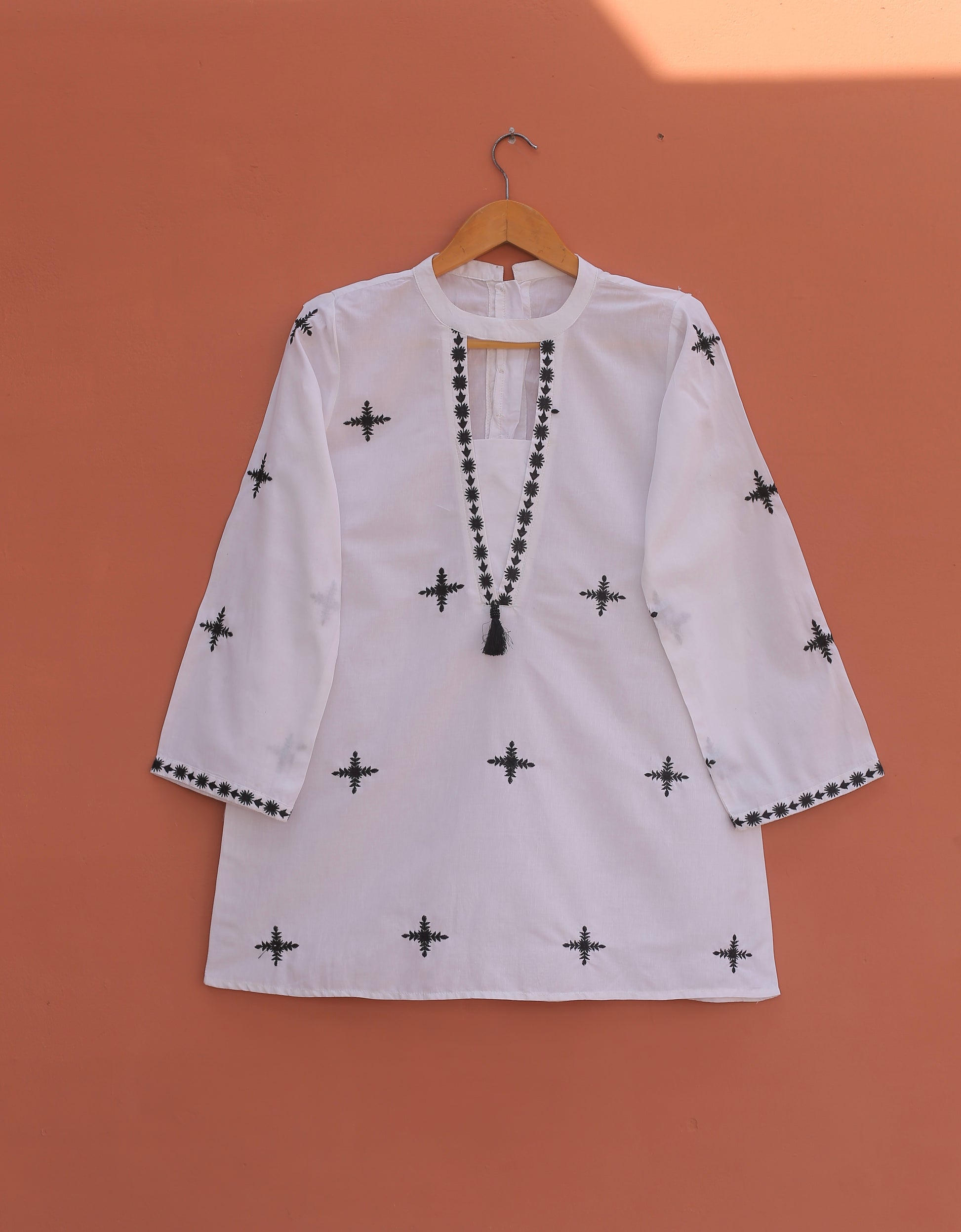 “Get ready to turn heads this summer with our stunning white top! Featuring a beautiful embroidery spray on the front and sleeves also an intricate embroidered neckline, this top is the ultimate statement piece for your summer wardrobe. Stay stylish and cool all season long with this must-have article!”